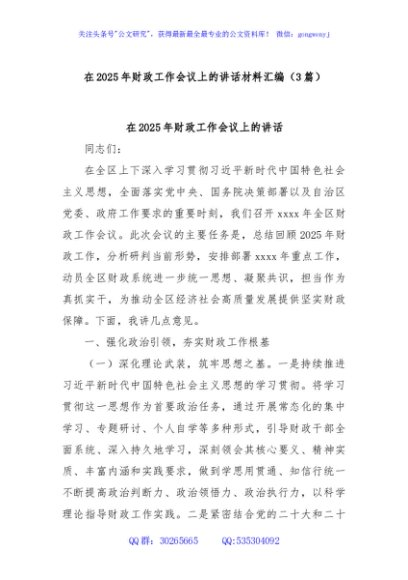 / (3篇)在2025年财政工作会议上的讲话材料汇编