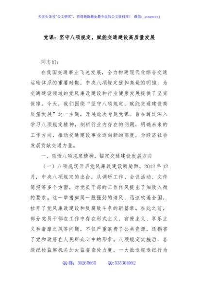 / 党课:坚守八项规定,赋能交通建设高质量发展
