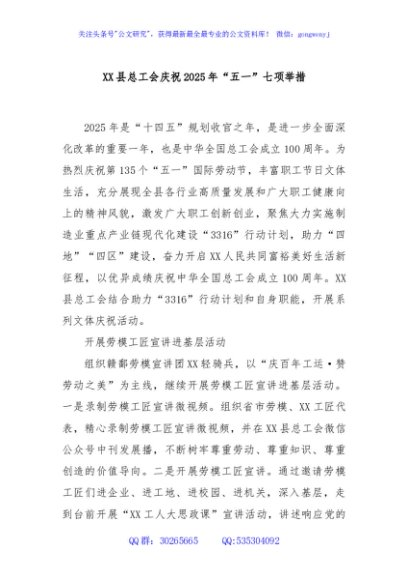 / XX县总工会庆祝2025年“五一”七项举措