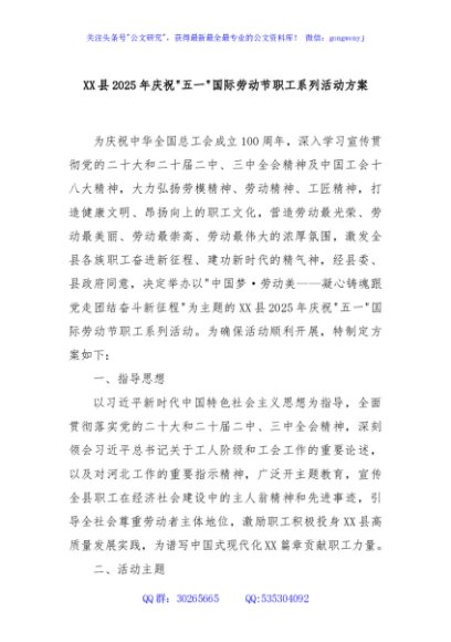 / XX县2025年庆祝“五一”国际劳动节职工系列活动方案