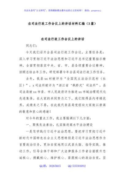 / (3篇)在司法行政工作会议上的讲话材料汇编