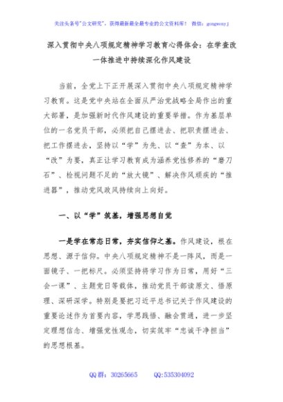 / 深入贯彻中央八项规定精神学习教育心得体会:在学查改一体推进中持续深化作风建设