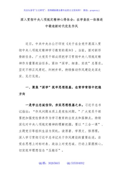 / 深入贯彻中央八项规定精神心得体会:在学查改一体推进中锻造新时代优良作风