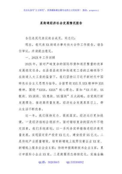 / 某街道经济社会发展情况报告