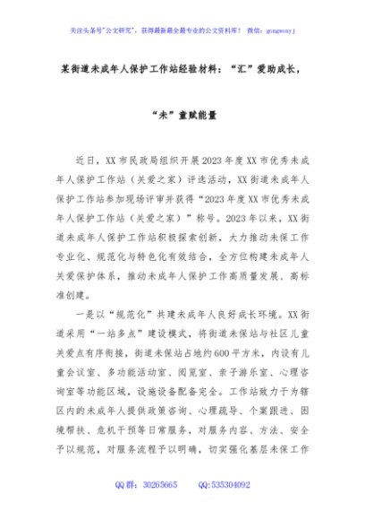 / 某街道未成年人保护工作站经验材料:“汇”爱助成长,“未”童赋能量