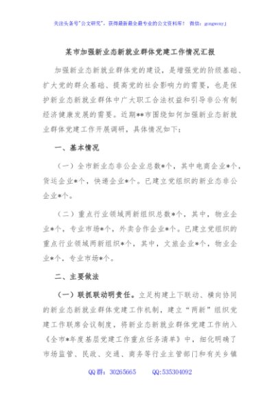 / 某市加强新业态新就业群体党建工作情况汇报