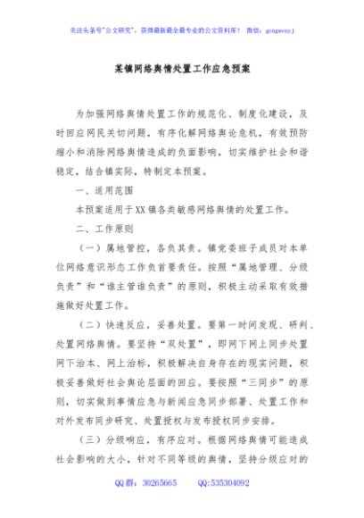 / 某镇网络舆情处置工作应急预案