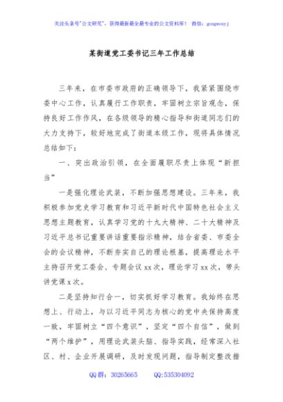 / 某街道党工委书记三年工作总结