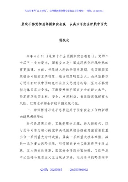 / 坚定不移贯彻总体国家安全观 以高水平安全护航中国式现代化