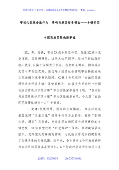 守初心担使命敢作为 奏响民族团结幸福曲——乡镇党委书记民族团结先进事迹