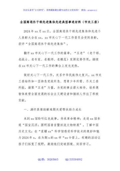 / 全国离退休干部先进集体先进典型事迹材料(市关工委)
