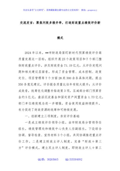 / 交流发言:聚焦问效多措并举,打造财政重点绩效评价新模式