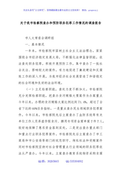 / 关于我市检察院查办和预防职务犯罪工作情况的调查报告