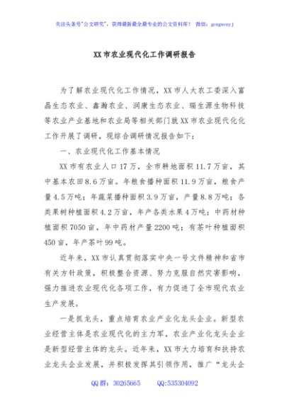 / XX市农业现代化工作调研报告