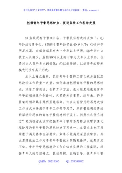 / 把握青年干警思想特点,促进监狱工作科学发展