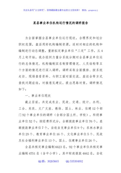 / 某县事业单位机构运行情况的调研报告
