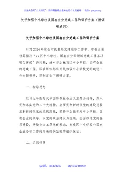 / 关于加强中小学校及国有企业党建工作的调研方案(附调研提纲)