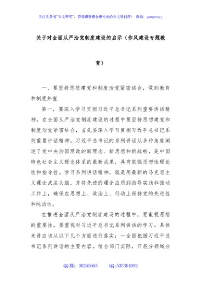 关于对全面从严治党制度建设的启示(作风建设专题教育)