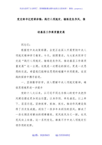/ 党支部书记党课讲稿:践行八项规定、锤炼优良作风、推动基层工作高质量发展