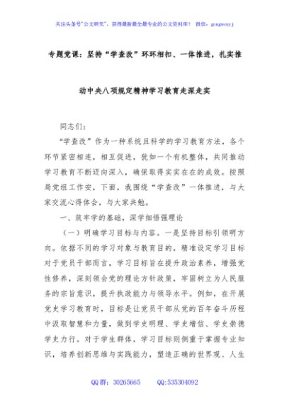 / 专题党课:坚持“学查改”环环相扣、一体推进,扎实推动中央八项规定精神学习教育走深走实