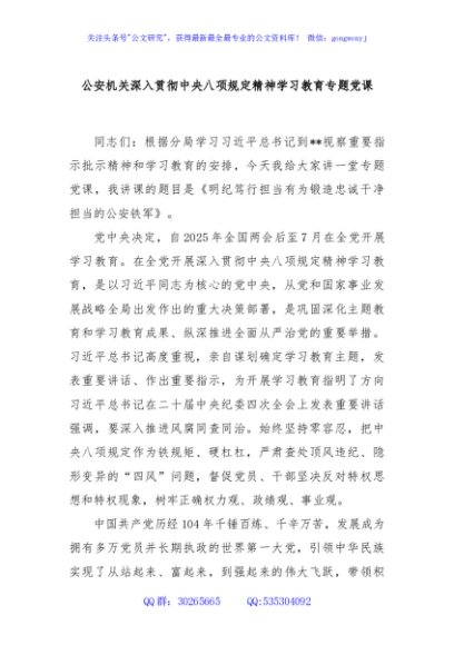 / 公安机关深入贯彻中央八项规定精神学习教育专题党课