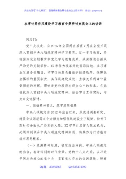 / 在审计局作风建设学习教育专题研讨交流会上的讲话