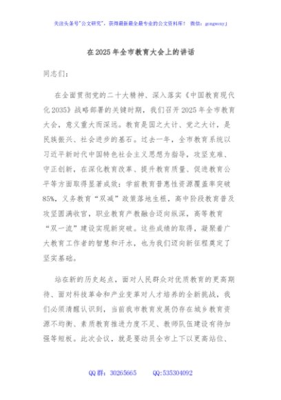 / 在2025年全市教育大会上的讲话
