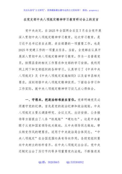 / 在党支部中央八项规定精神学习教育研讨会上的发言