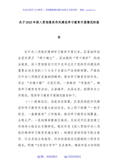 / 关于2025年深入贯彻落实作风建设学习教育开展情况的报告