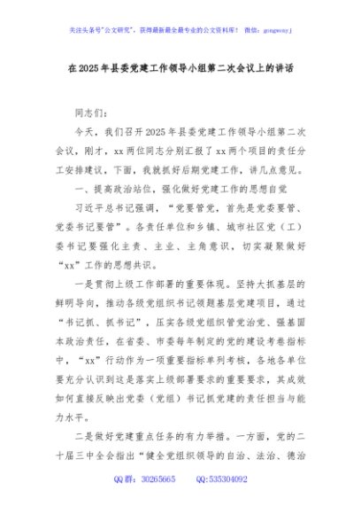 / 在2025年县委党建工作领导小组第二次会议上的讲话