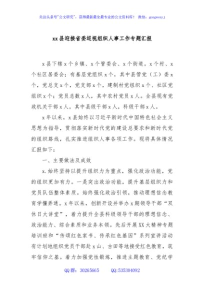 / xx县迎接省委巡视组织人事工作专题汇报