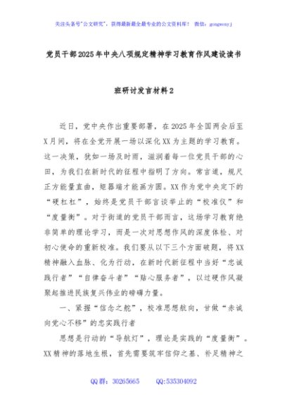 / 党员干部2025年中央八项规定精神学习教育作风建设读书班研讨发言材料2
