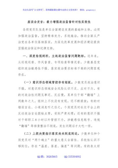 / 座谈会发言:着力增强政治监督针对性实效性