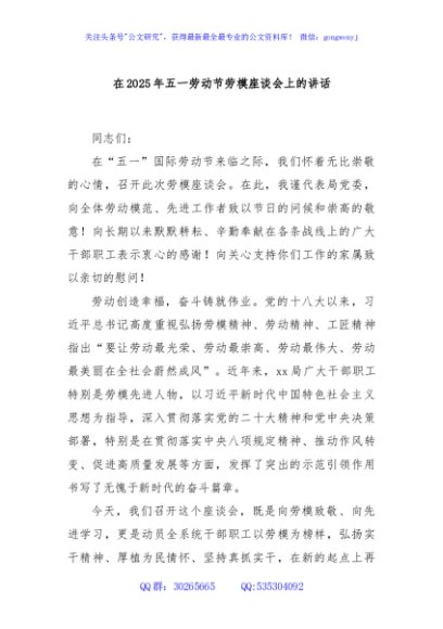 / 在2025年五一劳动节劳模座谈会上的讲话