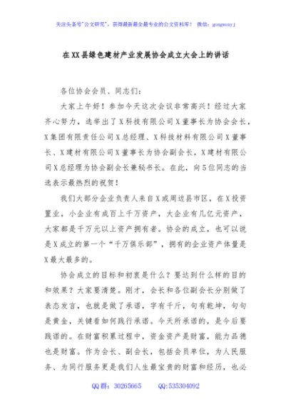 / 在XX县绿色建材产业发展协会成立大会上的讲话
