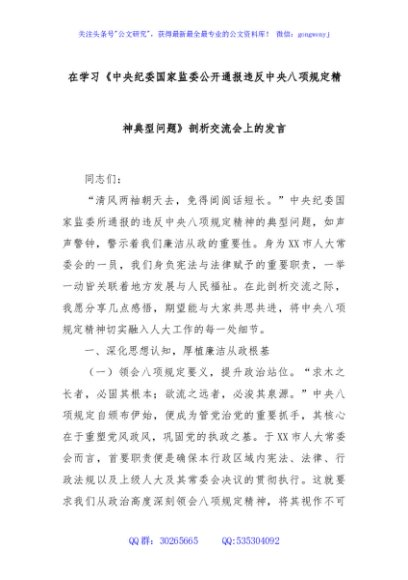/ 在学习《中央纪委国家监委公开通报违反中央八项规定精神典型问题》剖析交流会上的发言