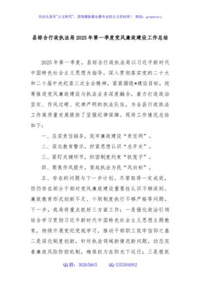 / 县综合行政执法局2025年第一季度党风廉政建设工作总结