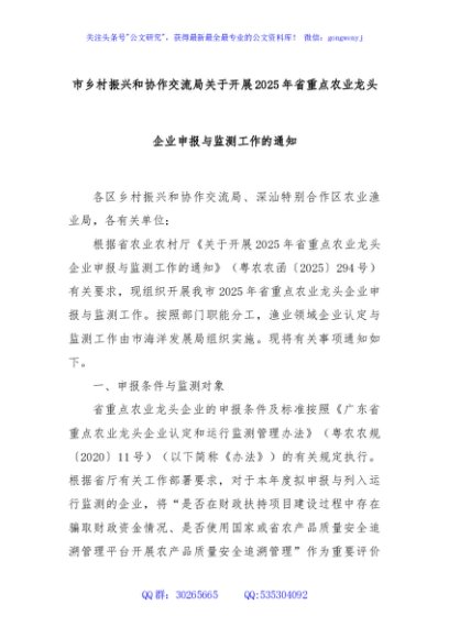 / 市乡村振兴和协作交流局关于开展2025年省重点农业龙头企业申报与监测工作的通知