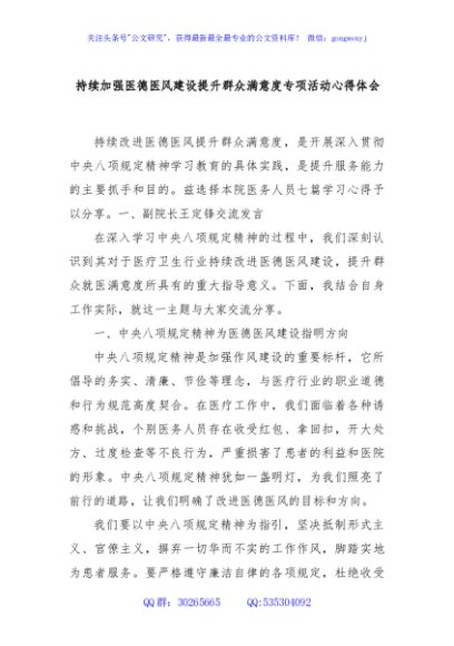 / 持续加强医德医风建设提升群众满意度专项活动心得体会