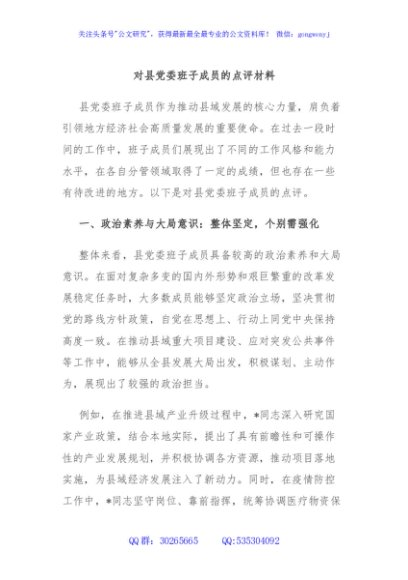 / 对县党委班子成员的点评材料