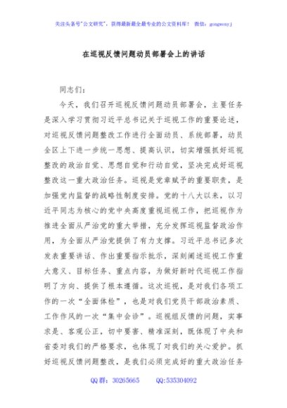 / 在巡视反馈问题动员部署会上的讲话