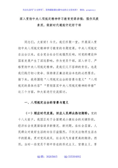 / 深入贯彻中央八项规定精神学习教育党课讲稿:强作风提素质,做新时代遵规守纪好干部