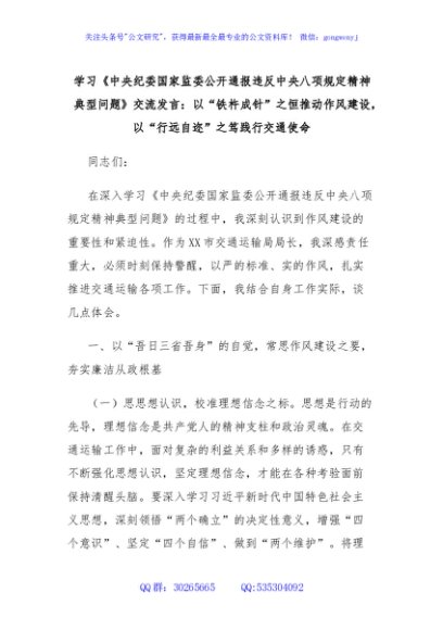 学习《中央纪委国家监委公开通报违反中央八项规定精神典型问题》交流发言:以“铁杵成针”之恒推动作风建设,以“行远自迩”之笃践行交通使命