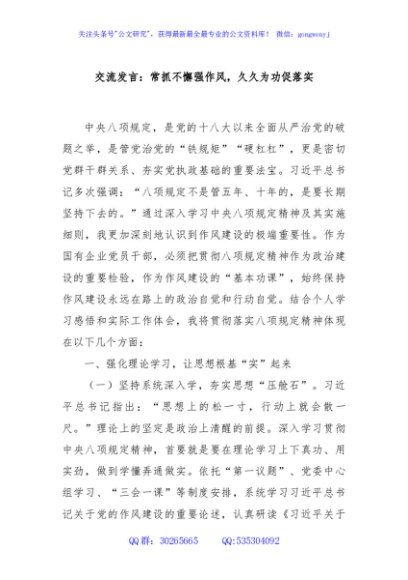 / 交流发言:常抓不懈强作风,久久为功促落实