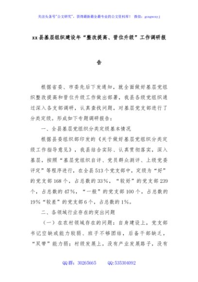/ xx县基层组织建设年“整改提高、晋位升级”工作调研报告