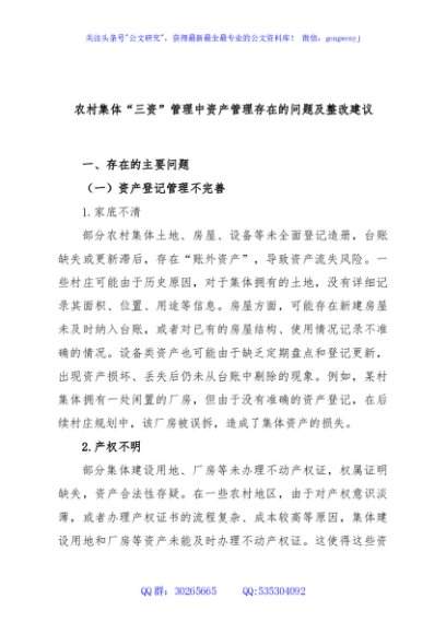 / 4.农村集体“三资”管理中资产管理存在的问题及整改建议