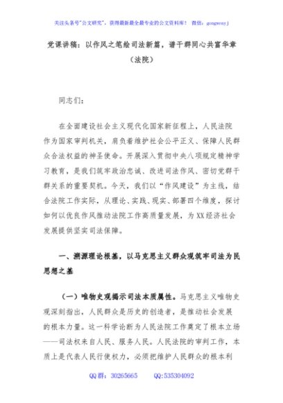 / 党课讲稿:以作风之笔绘司法新篇,谱干群同心共富华章(法院)