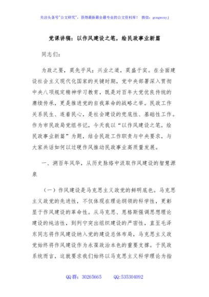 / 党课讲稿:以作风建设之笔,绘民政事业新篇