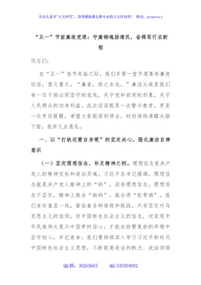 / “五一”节前廉政党课:守廉铸魂扬清风,奋楫笃行启新程