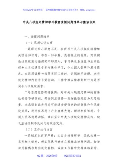 / 中央八项规定精神学习教育查摆问题清单与整治台账